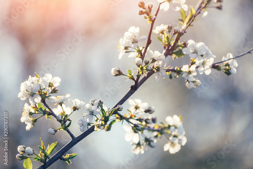 Fototapeta premium White cherry flowers on spring time. Macro nature photography