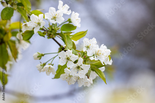 Fototapeta premium White cherry tree flowers blooming in spring