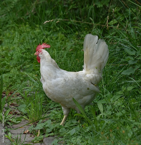© lisica1, Fototapeta premium white chicken on a green background