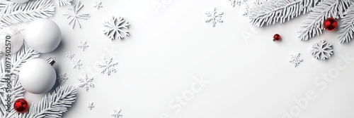 © Brian, Fototapeta premium white christmas background with snowflakes and christmas balls