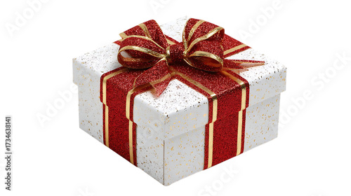 © Asad, Obraz premium White christmas gift box with red ribbon isolated on transparent background