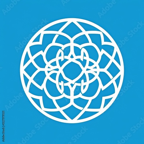 © Npicture, Naklejka premium White Circular Geometric Pattern Centered Against a Blue Background