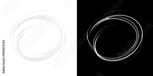 © ellyson, Fototapeta premium White circular wind swirl ring / frame effect, abstract vortex circle. Includes transparent PNG version and black background preview version.