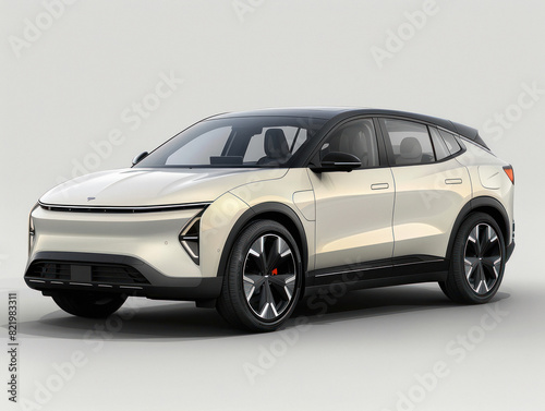 © Niks Ads, Fototapeta premium White city car standing on white background