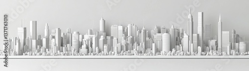 Naklejka premium White city skyline model, urban landscape, architecture, design, real estate