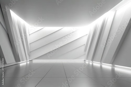 Fototapeta premium White clean empty interior room with indirect light from right and cornered back walll. 3d rendering.
