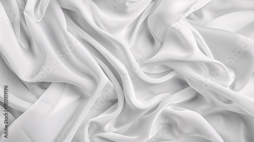© mahamad, Obraz premium White cloth background with soft waves and close-up elegant crumpled texture.