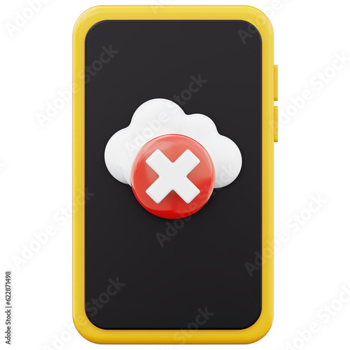 © Yumo, Obraz premium White cloud cross wrong icon computing error cancel symbol on mobile phone 3d render illustration isolated on transparent background