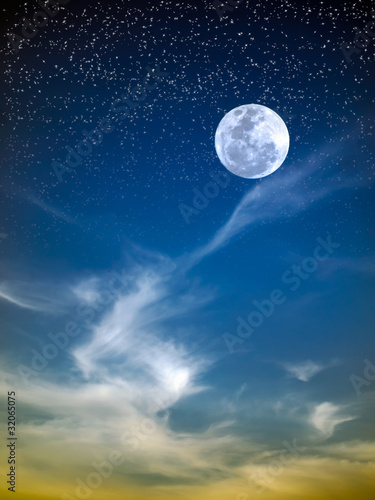 Fototapeta premium White cloud dragon and full moon