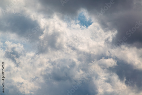 Fototapeta premium White cloud texture against gray clouds high in the sky, close-up inside the...
