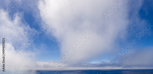 © edb3_16, Obraz premium White Clouds Above the Blue Pacific Ocean Under a Clear Sky
