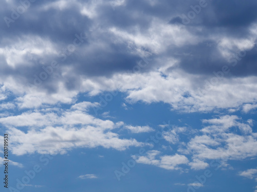© Sergey, Fototapeta premium white clouds against blue sky. Weather forecast.