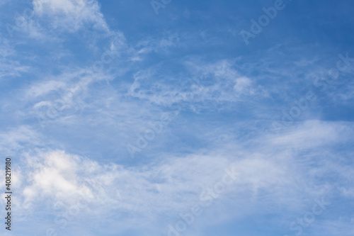 © Sergei, Fototapeta premium White clouds against the blue sky. Background image.
