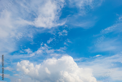 © Naj, Fototapeta premium White clouds in a blue sky at sunrise in winter, Almere, Flevoland, Netherlands, November 12, 2023