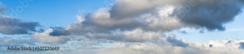 © wildman, Obraz premium White clouds in blue summer sky panoramic background