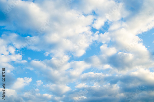 Obraz premium White clouds on a blue sky background.