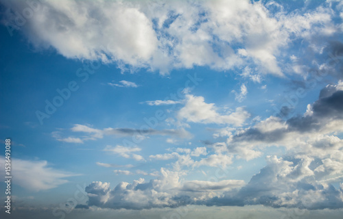 Obraz premium White clouds scattered around a vivid blue sky forming a circular opening...