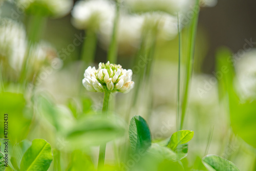 © makoto sato, Obraz premium White clover flower cluster landscape