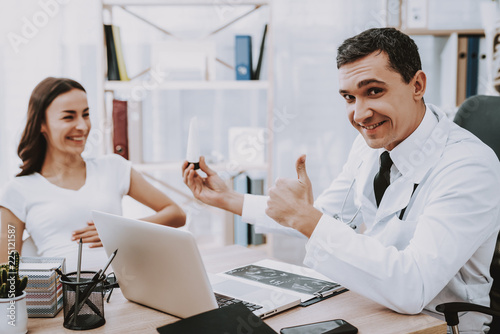 © Vadym Huzhva, Obraz premium White Coat. Doctor. Consultation. Hospital. Smile.