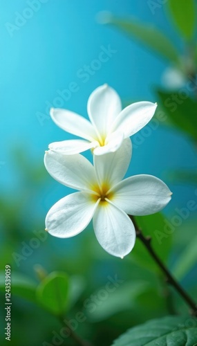 © Chanchai, Naklejka premium White coffee blossoms against a bright blue sky, horticulture,