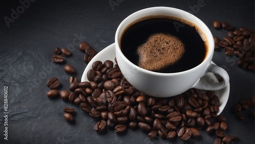 © Free, Fototapeta premium white coffee cup filled with black coffee on a saucer