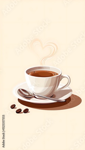 © Bappa, Fototapeta premium White Coffee Cup With Heart-Shaped Steam And Coffee Beans