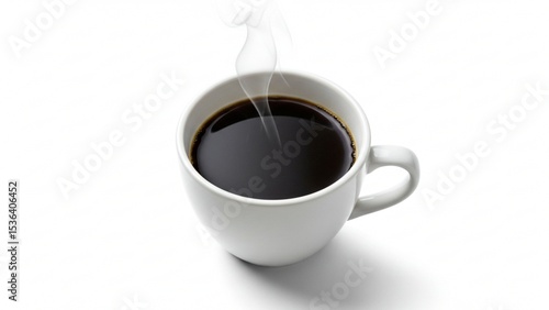 © m0lydar, Obraz premium White coffee cup with hot black coffee in the middle of a plain white background