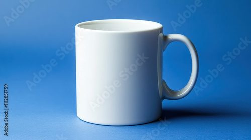 Fototapeta premium white coffee mug on blue background, perfect for beverages and showcasing...