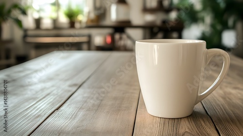 © sahina, Obraz premium White Coffee Mug on Rustic Wooden Table