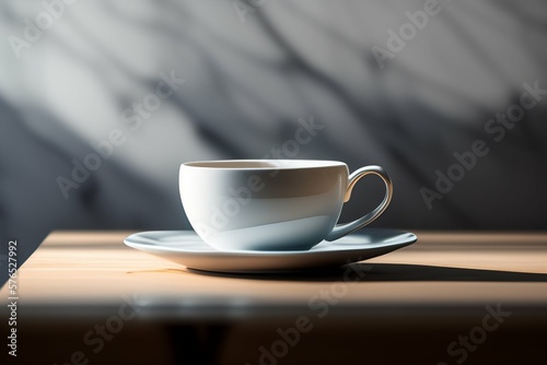 Obraz premium White coffee mug on the top of a desk, empty cup isolated for design, generative Ai
