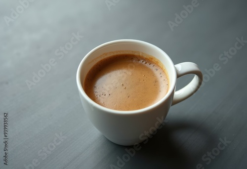 © Anarkali Art, Fototapeta premium White Coffee Mug with Rich Cappuccino on Gray Background