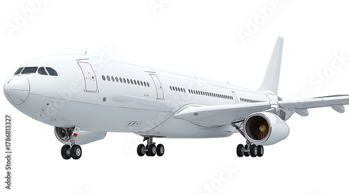 © MdAriful, Fototapeta premium White commercial airplane isolated on transparent background