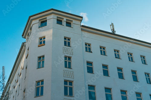 Fototapeta premium white corner house with high contrasted sky