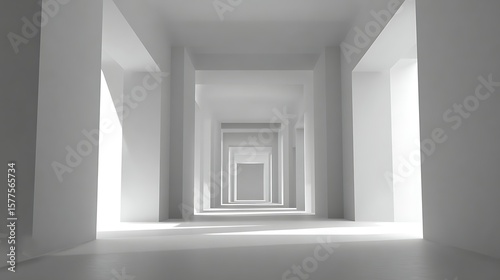 © Nabil, Fototapeta premium White Corridor with Repeating Arches