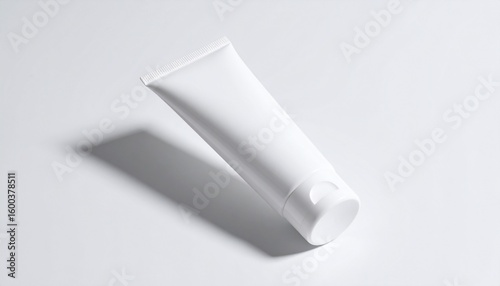 Fototapeta premium White cosmetic tube mockup, clean background, studio lighting, product display.