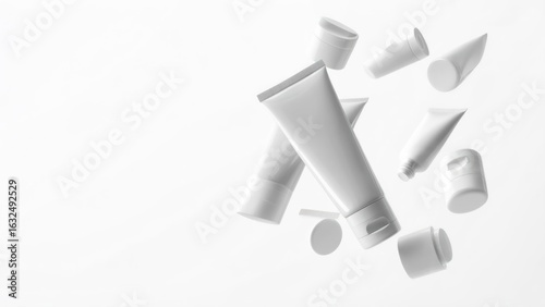 © rama, Fototapeta premium White cosmetic tubes in mid-air