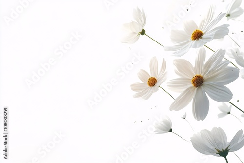 Naklejka premium White Cosmos Flowers: A Delicate Dance of Petals - Botanical Photography of...