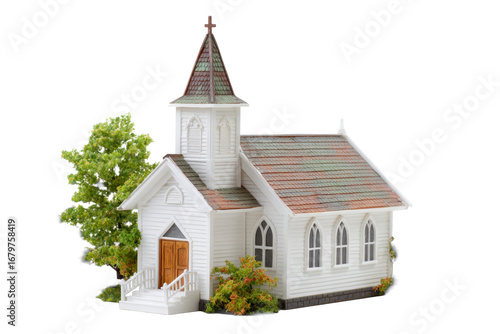 © Аrtranq, Fototapeta premium White Country Church Model on Transparent Background