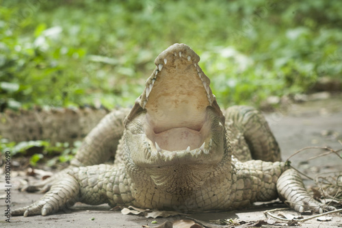 Naklejka premium White Crocodile / Albino Siamese Crocodile : Freshwater crocodile , skin is white , nearly extinct , found in Southeast Asia
