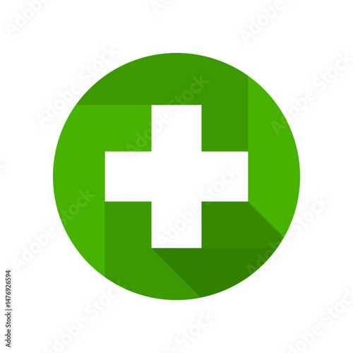 © Jedsada Naeprai, Obraz premium White cross medical on green circle icon flat vector design