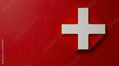 © Dzikrul Husnani, Obraz premium White Cross Symbol on Red Background Modern Minimalist Style Graphic