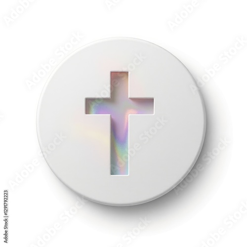 © Neuroillustrator3033, Obraz premium White cross with holographic detail on simple background