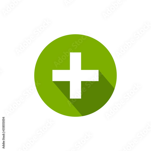 Fototapeta premium white cross with shadow in green circle. Flat vector icon isolated on white.