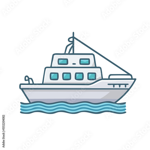 Obraz premium White Cruise Boat Sailing on Water with Light Blue Waves isolated on Black...