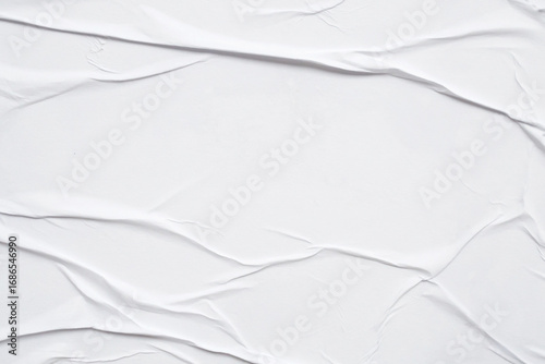 © Kwangmoozaa, Fototapeta premium white crumpled and creased glued wrinkled paper poster texture background