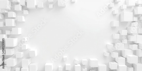© Prayad, Obraz premium White cube boxes arranged randomly on a shifted background create a modern and minimalist block wallpaper with copy space, geometric, abstract