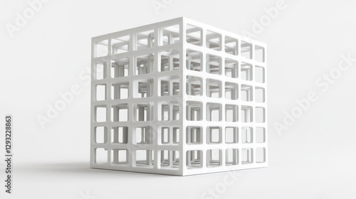 Fototapeta premium White cube structure, minimalist design, studio background, 3D model,...