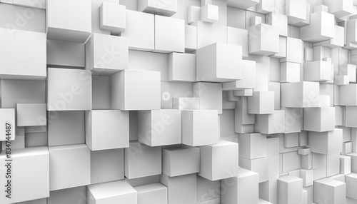 © DJSPIDA FOTO, Obraz premium White cubes and blocks create an abstract background, 3D rendering illustration