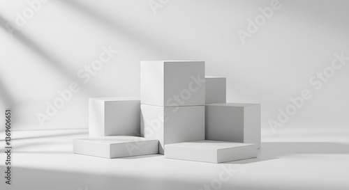 © Waseem, Obraz premium White Cubes and boxes Arrangement