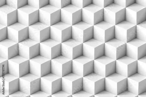© Aillusionist, Fototapeta premium White cubes form a repeating geometric pattern.